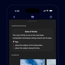 Esta app permite aceder a diferentes tipos de grelhas, entre opções que seguem a clássica regra dos terços, linhas diagonais, modelos mais simétricos ou personalizados. As grelhas podem ser ajustadas consoante as exigências de cada cena ou estilo fotográfico, como para retratos.