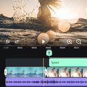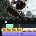 Pode cortar, juntar e misturar fotos e vídeos, ajustar a velocidade para acelerar ou desacelerar, adicionar títulos e sobreposições de texto.