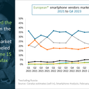Veja na galeria mais dados sobre a distribuição de smartphones na Europa no 4º trimestre de 2023: