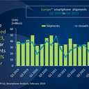 O mais recente relatório da Canalys sobre a distribuição de smartphones na Europa dá conta de uma quebra de 3% no quarto trimestre de 2023, em relação ao período homólogo do ano anterior. Durante este período foram colocados nas lojas 37,8 milhões de unidades, com destaque para a Apple que assumiu a liderança, depois de ficar atrás da Samsung durante sete trimestres.