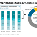Segundo a análise da Canalys, os smartphones topo de gama registaram números recorde de quota de mercado durante o quarto trimestre de 2023. Os modelos acima dos 800 dólares contribuíram com 40% dos equipamentos enviados para as lojas. Os principais responsáveis foram os modelos da linha iPhone 15 Pro, mas também a consistência da série S da Samsung Galaxy. Os smartphones Google Pixel também registaram um crescimento, sobretudo pela sua chegada a mais mercados, incluindo Portugal.A consultora indica ainda que na lista dos smartphones mais vendidos a nível mundial em 2023, a Apple domina, com 7 em 10 modelos. E não faltam os iPhone topo de gama, com o iPhone 14 Pro Max e 15 Pro Max em primeiro e segundo lugares.