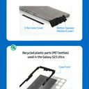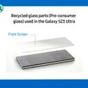 Detalhando um pouco mais os resultados desta aposta, a capa interna da S Pen contém no mínimo 20% de poliamida proveniente do oceano. Cerca de 22% do material usado no vidro frontal e traseiro do S23 é reciclado, enquanto 80% da película do vidro traseiro é também de material reciclado. Os corantes para anodizar as estruturas metálicas são feitos de corante 10% natural. A embalagem do modelo é feita de papel 100% reciclado, excluindo a etiqueta do selo e o vinil de encolhimento.