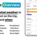 As previsões incluem dados sobre temperatura, vento, precipitação, visibilidade, alertas oficiais de meteorologia, bem como horas de nascer e pôr do sol. Uma das funcionalidades principais é o mapa interativo, onde os utilizadores podem visualizar o seu trajeto, os pontos de paragem e as condições meteorológicas previstas para esses locais.
