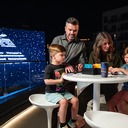 E no final, pode também comprar produtos de merchandising exclusivos para clientes do restaurante. Detalhes interessantes para os robots Optimus expostos em vitrines decorativas no interior, mas também a distribuir pipocas aos visitantes. Os hambúrgueres são entregues em caixas em forma de um automóvel da Tesla e os menus para crianças incluem brindes de cybertrucks em miniatura.