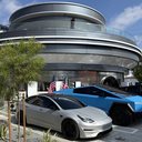 Enquanto recarregam os seus automóveis, os clientes da Tesla podem tomar refeições no restaurante com um tema retro-futurista que abriu portas em Hollywood.