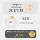 O tráfego total nas redes 5G atingiu 26.179 TB durante o segundo trimestre do ano. O valor corresponde a uma média mensal de 5 GB por cada utilizador de Internet móvel. A ANACOM estima que o tráfego registado em redes 5G representou cerca de 9,5% do total de tráfego de dados móveis.Anteriormente, a ANACOM já tinha dado a conhecer mais dados sobre a evolução do 5G em Portugal ao longo do segundo trimestre do ano. Segundo a entidade reguladora, o número de estações base 5G instaladas no país registou um aumento de 12% durante o período em análise, com 839 novas estações.