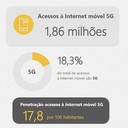 A entidade reguladora explica que, ao todo, registaram-se 1,86 milhões de acessos móveis à Internet 5G, numa taxa de penetração de 17,8 em 100 habitantes.